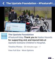 Hades Hounds Donated $10,000 to Ronald McDonald House Syracuse on 10/22/25 from Ride For Ribbons benefit Ride and Also Donated $12,000 to Onondaga County Sheriff's Air 1 / K-9 on 10/19/25 from Air 1/ K-9 benefit ride this year.